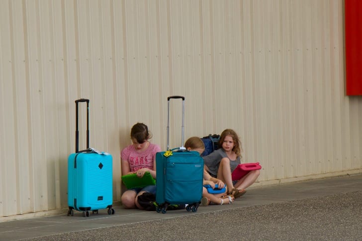 Mitchell Luo/Unsplash: Kids with suitcases waiting for parents